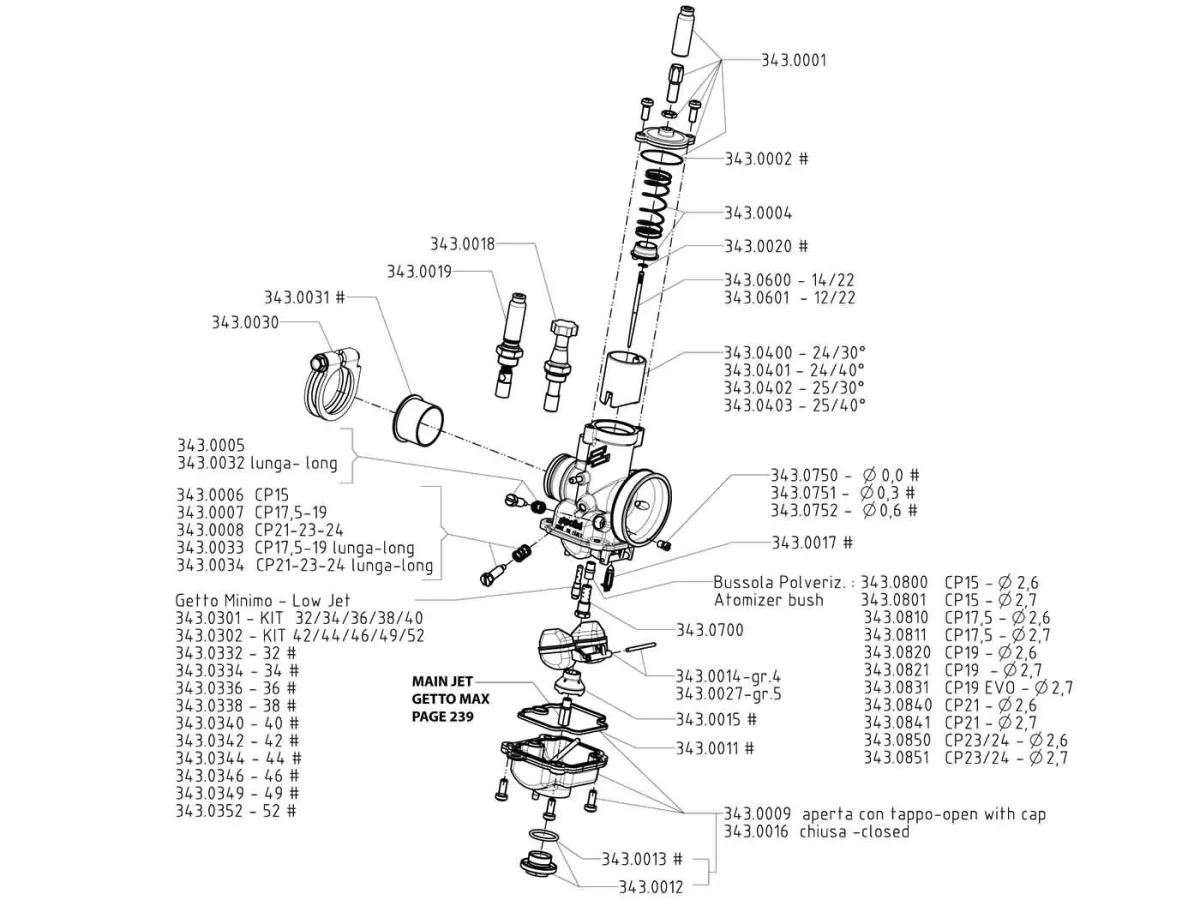 Der in Italien gefertigte Vergaser steht in punkto Genauigkeit und Verarbeitungsqualität an oberster Stelle der von uns angebotenen Vergaser. Der große Ansaugtrichter mit 46mm Durchmesser ist einzigartig in seiner Klasse.