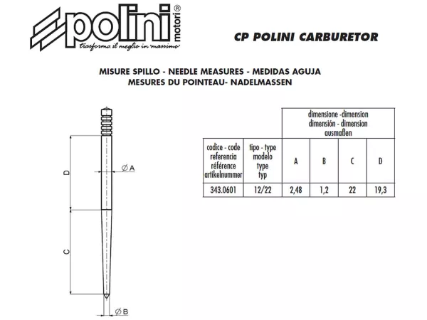 Ersatz-Vergasernadel 12/22 für die Polini CP Tuningvergaser.