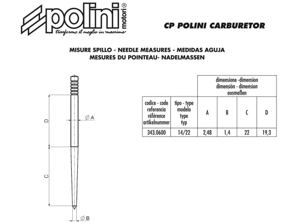 Ersatz-Vergasernadel 14/22 für die Polini CP Tuningvergaser.