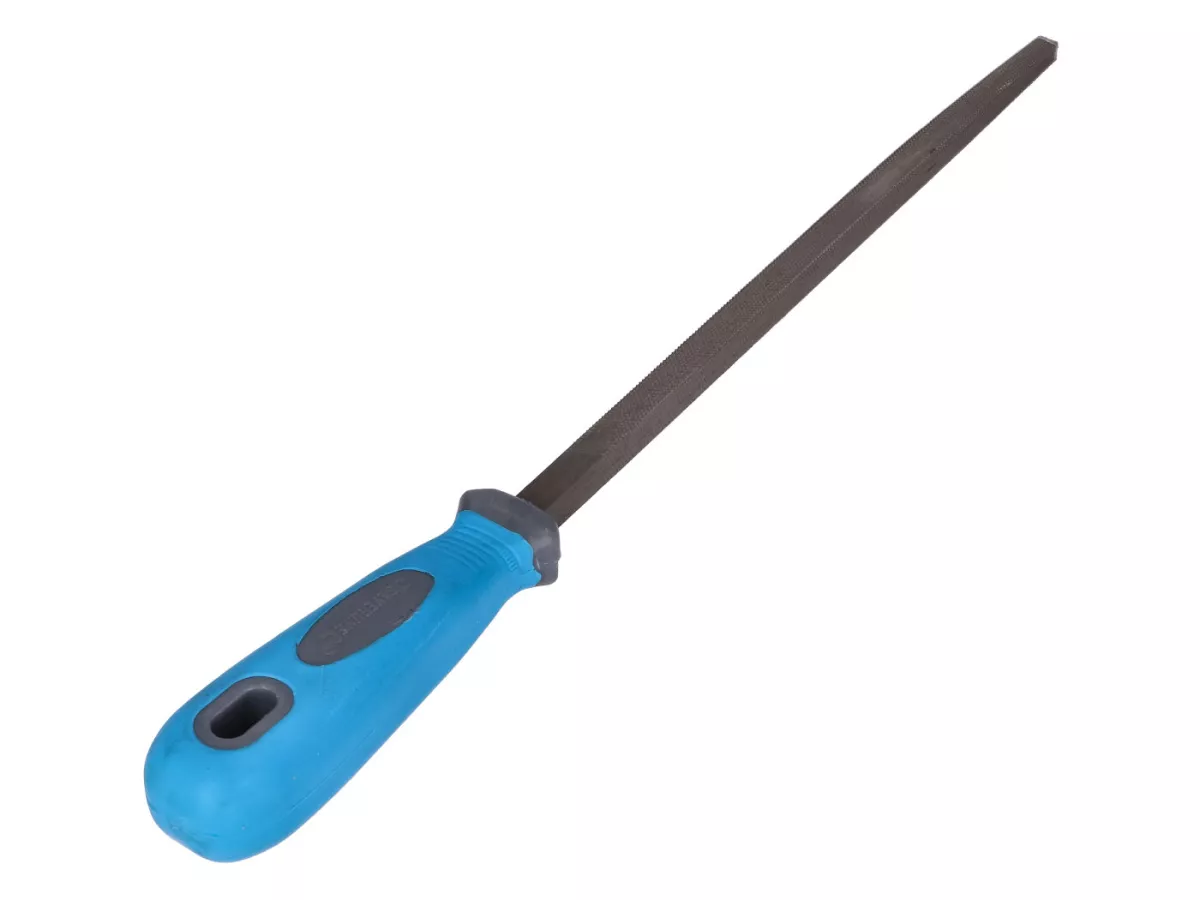 Vierkantfeile aus Einsatzstahl. Zweifach bearbeitet. Weicher Griff für rutschfreies Arbeiten. Feilenhefte mit praktischem Aufhängeloch.