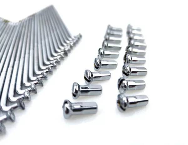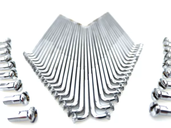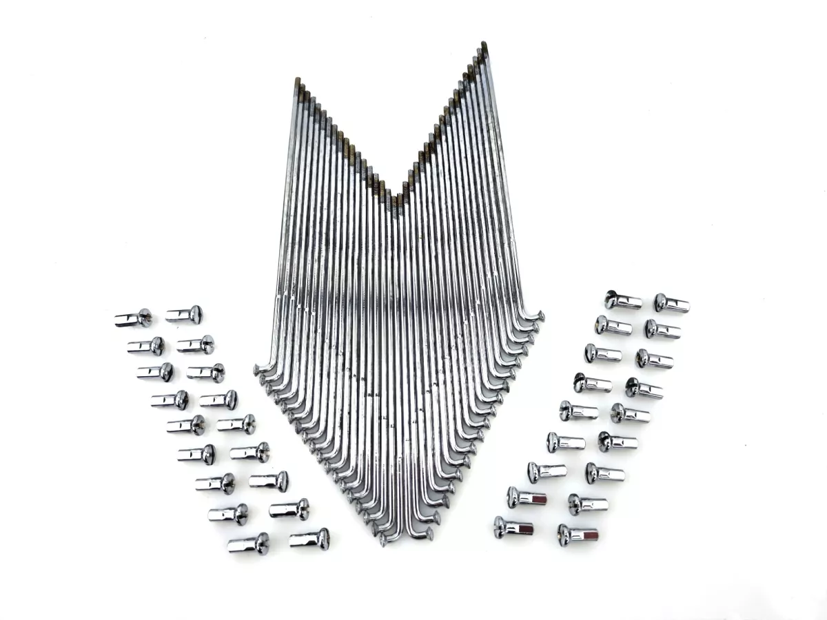 Angeboten wird ein kompletter Satz Chrom Speichen mit Nippel ( 36 Stück )
