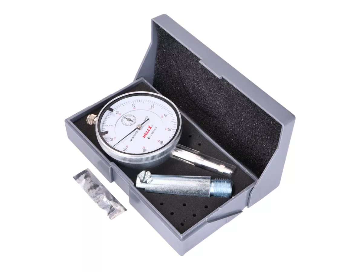 Messuhr-Werkzeug von Swiing für Ermittlung der perfekten Einstellung der Zündung. Dieses absolut präzise Werkzeug ermittelt den oberen Totpunkt des Kolbens auf 0.01 mm genau.