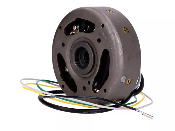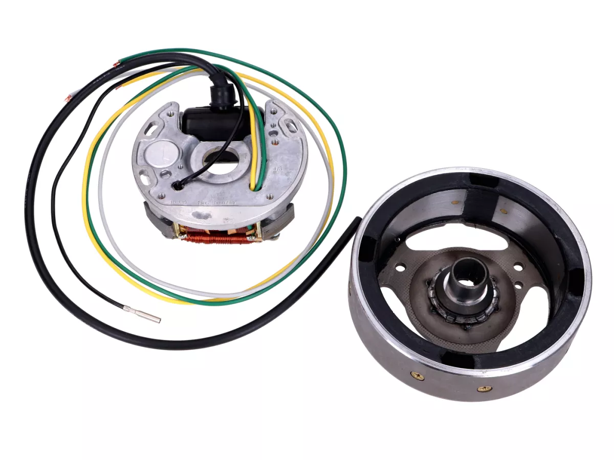 Die Zündung bestehend aus Zündanker und Rotor mit einer Leistung von 6V/23W mit integrierter Bremslichtspule ist ein hochwertiges Ersatzteil, speziell entwickelt für klassische Motorräder und Mokicks der Marken Hercules, KTM, Kreidler sowie Puch. Er liefert eine stabile 6-Volt-Spannung bei einer Leistung von 23 Watt und gewährleistet somit eine zuverlässige Zündfunktion und gleichzeitige Energieversorgung des Bremslichts.