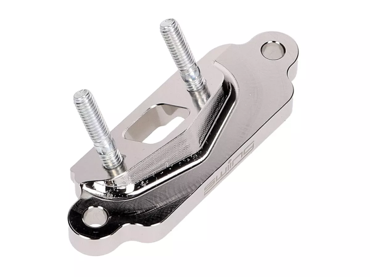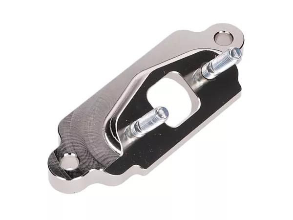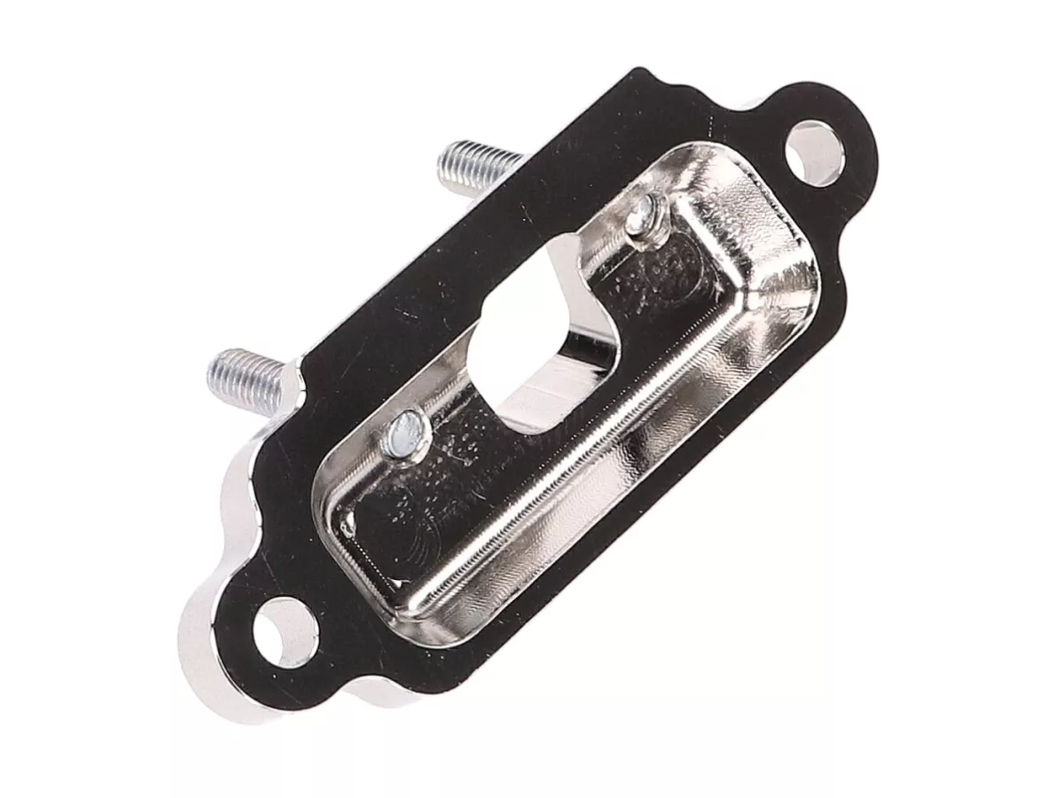 Zwischenflansch / Membranblock zur Montage für einen 13mm SSB-Vergaser. Aus CNC-gefrästem Aluminium mit 13x13mm Einlassfenster. Die Stehbolzen sind mit Loctite gesichert.