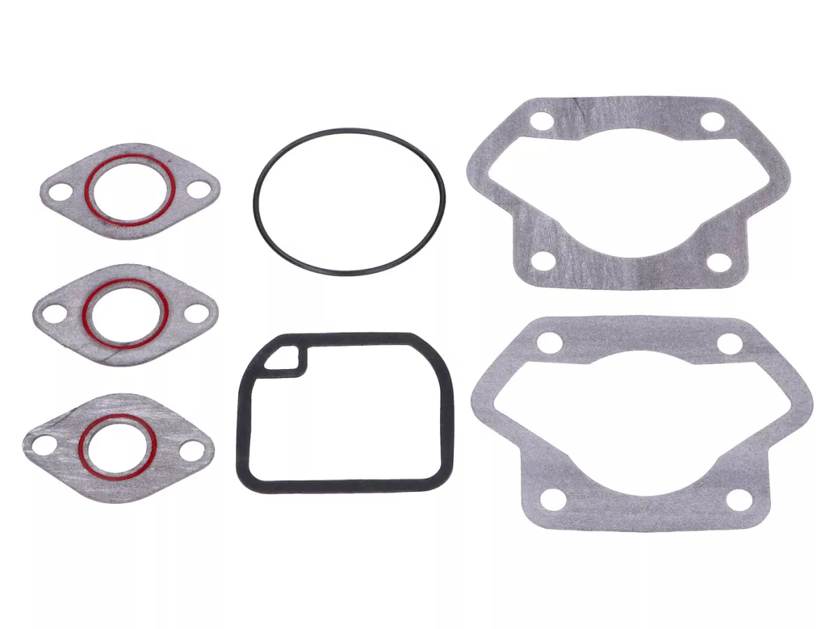 Diese Dichtungen passen maßhaltig unter die Zylinder der 50ccm bis 60ccm Motoren und haben eine optimierte Kontur passend zu den erweiterten Überströmkanälen. Die beiliegenden Vergaser-Dichtungen haben nicht nur das passende Innenmaß für 16mm, 19mm, 21mm Vergaser, sondern besitzen als besonderes Highlight eine beidseitig aufgebrachte Silikondichtung. Eine FKM-Dichtung für BVF-Vergaser und eine O-Ring-Dichtung für die Schmitt Zylinderköpfe mit Zentrierung sind ebenso enthalten.