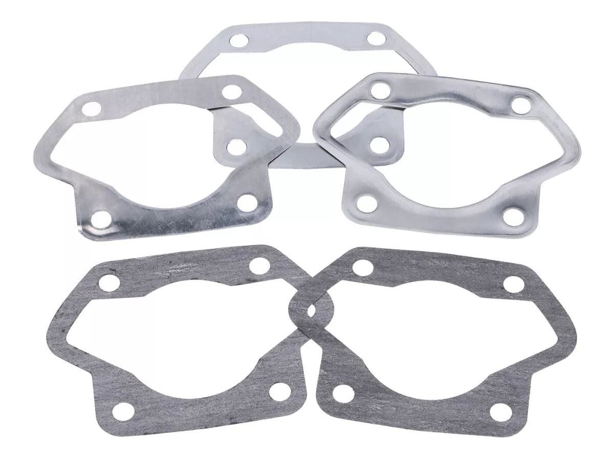 Ein Satz Schmitt Zylinderfußdichtungen aus Aluminium und Dichtungspapier passend für Simson Moped bzw. Simson Roller S51, S53, Schwalbe KR51/2, SR50 mit M500 Motor.