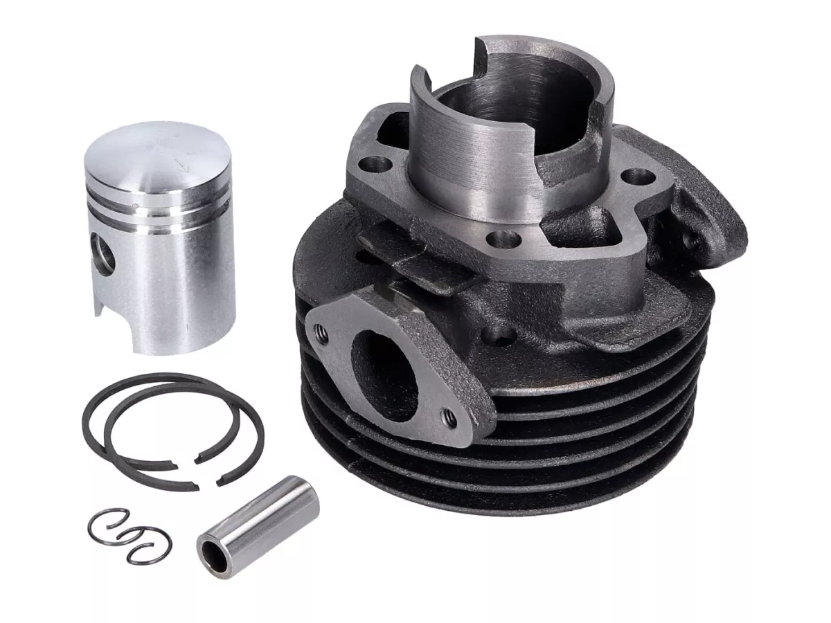 50ccm Zylinder mit 38mm Bohrung passend für Puch Moped / Mokick VS50, DS50, VZ50 mit R-Motor. Ein 2-Ring-Kolben mit 12x30mm Kolbenbolzen sowie Kolbenringe und Clips gehören bei diesem Kit zum Lieferumfang.