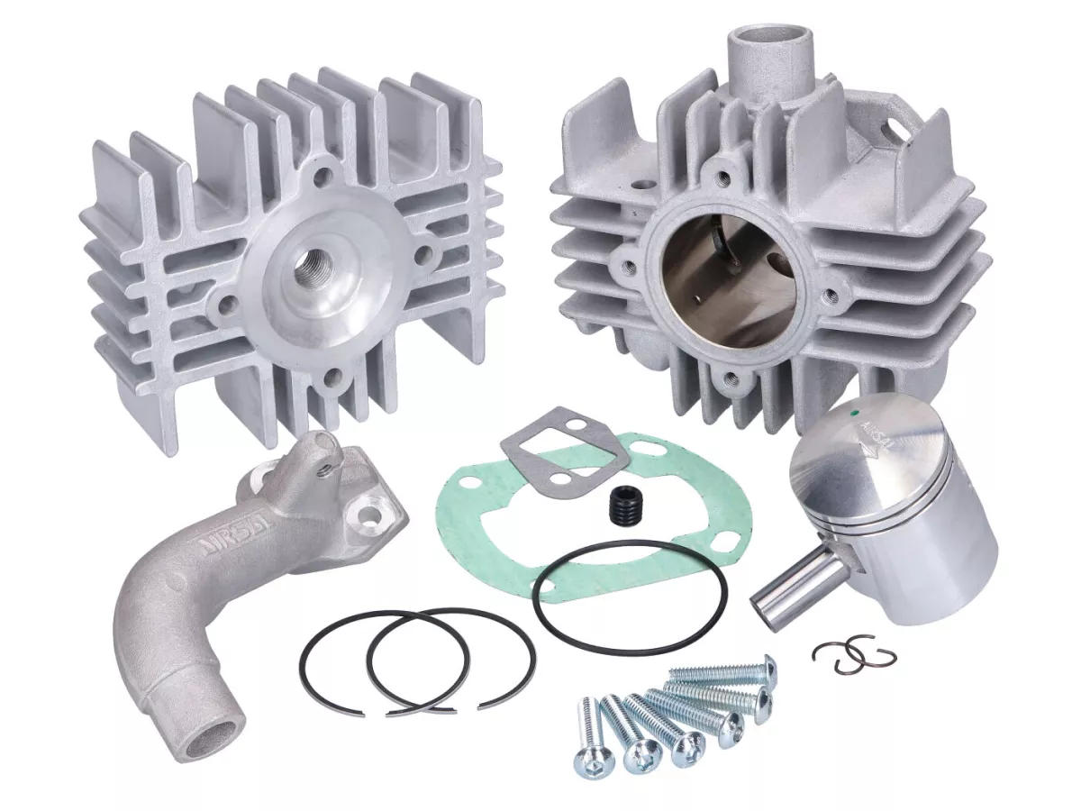 Airsal Aluminium-Zylinder im Kit mit Hubraumerweiterung und Leistungssteigerung. 62,4ccm Hubraum und eine hart beschichtete Zylinderlaufbahn passend für Sachs, Hercules Mofa 504 und 505.