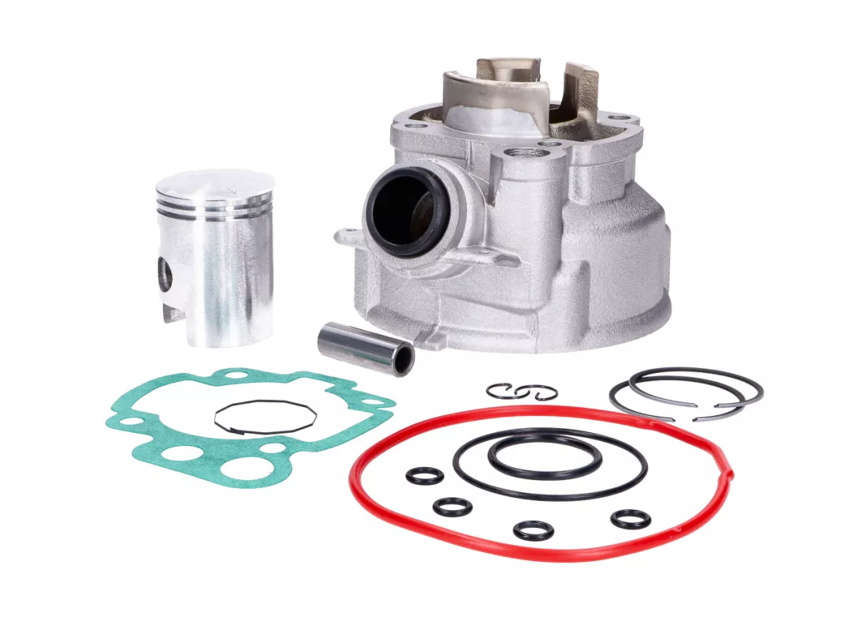 Zylinderkit DMP Alu Sport mit 50ccm Hubraum und sportlicher Charakteristik passend für Minarelli LC AM6 Schaltmoped. Ein Zylinderkopf ist nicht im Lieferumfang enthalten. Der original Zylinderkopf kann weiter verwendet werden.