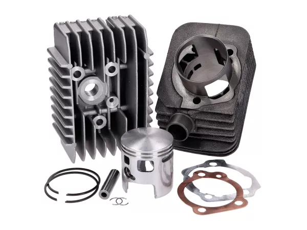Der 73ccm Malossi Racing Zylinder mit CVF ist ein drehmomentstarker Zylinderkit aus Grauguss mit robustem Kolben und 2 Kolbenringen. Der Zylinder ist mit seinen scharfen Steuerzeiten und dem CVF-System auf der Rennstrecke zu Hause. Er wird mit allen nötigen Kleinteilen, Dichtsatz, Einbauanleitung etc. geliefert und ist sehr gut verarbeitet. Lieferung mit Aluminium-Zylinderkopf. Qualitativ sehr hochwertiger Zylinderkit!