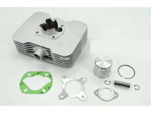 80ccm Tuning Zylinder Satz mit Kolben und Dichtungen von Parmakit, passend für Sachs 50 S Motoren, verbaut unter anderem bei Hercules K 50, DKW RT 159, KTM Comet, Horex. Bohrung 48mm, Kolbenbolzen 14mm, Vergaser Anschluss ca. 27mm, Auslass 32mm.