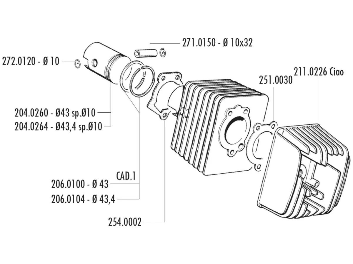 Der Zylinder hat eine Bohrung von 43mm und erreicht laut Herstellerangabe eine Leistung von 5,3PS.