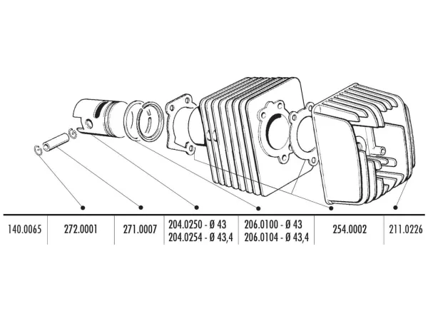 63ccm Grauguss Sport-Zylinderkit von Polini mit 12mm Kolbenbolzen für 50ccm Piaggio/ Vespa Ciao Mofas.