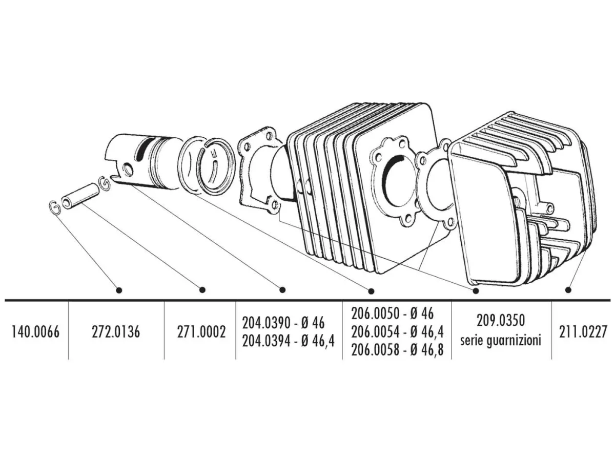 70ccm Grauguss Sport-Zylinderkit von Polini mit 12mm Kolbenbolzen für 50ccm Piaggio/ Vespa Ciao Mofas.