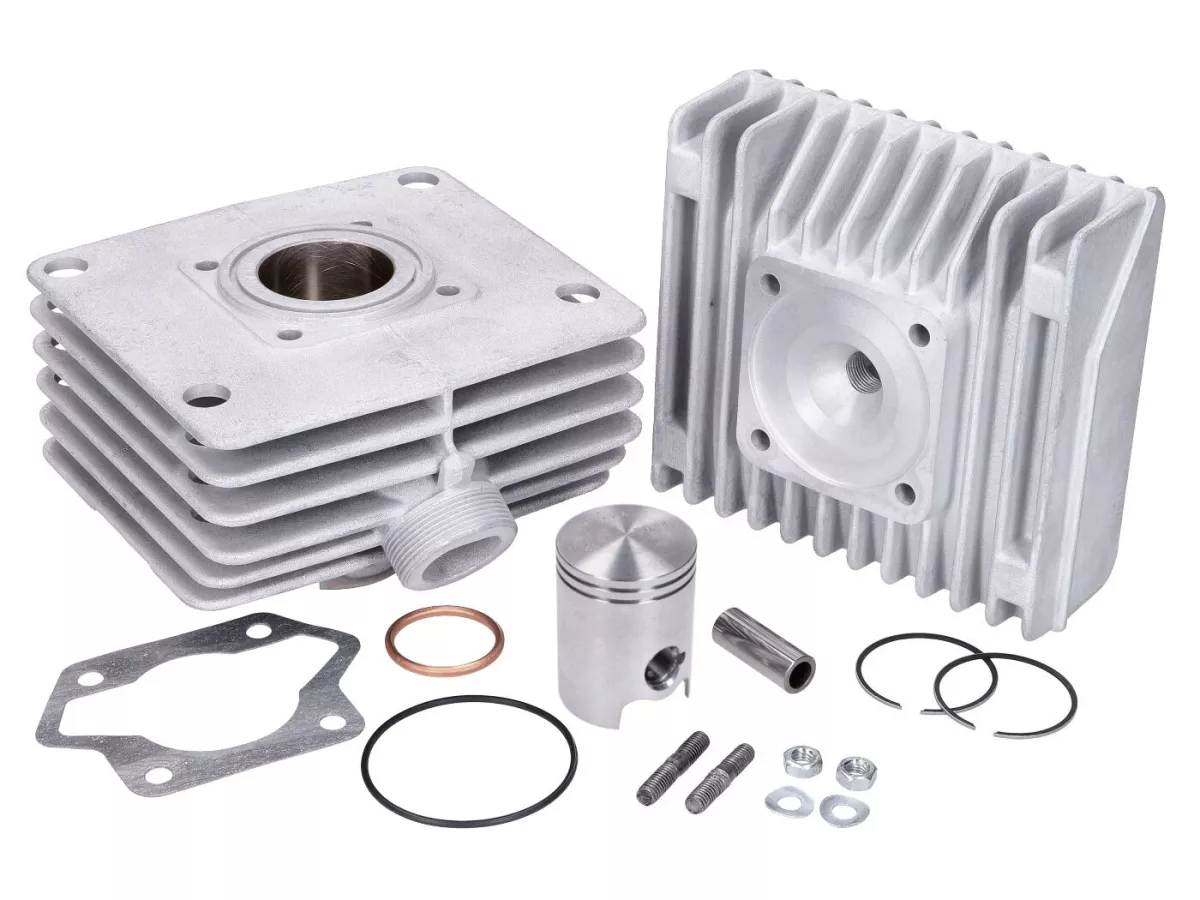 Im Lieferumfang sind enthalten: 4-Kanal-Zylinder (Nickel-Karbid-Silicium beschichtet), zentrierter Zylinderkopf, O-Ring-Dichtung, Fußdichtung, 2-Ring Almot Kolben, Vergaser-Stehbolzen und Kleinteile