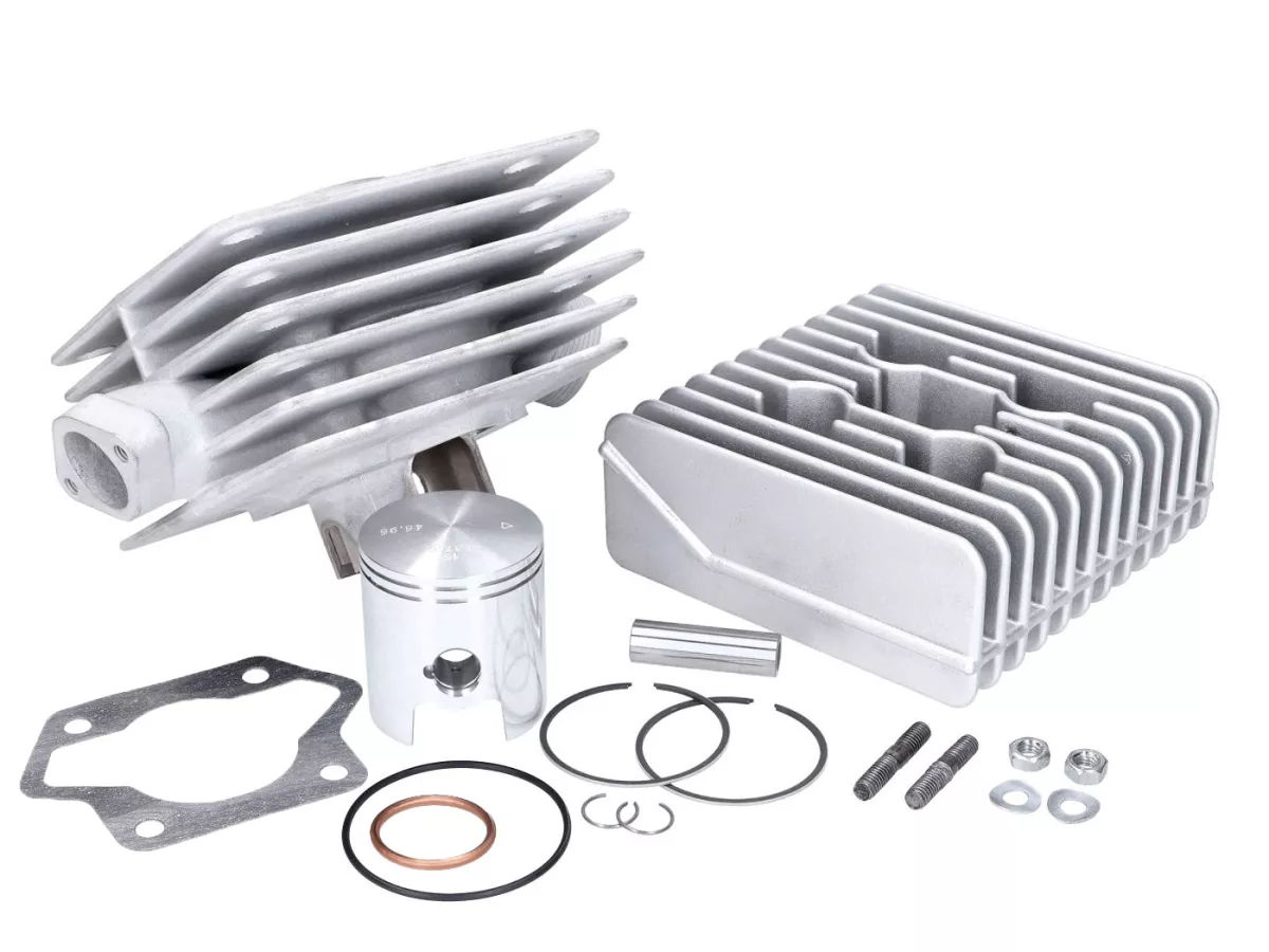 Im Lieferumfang sind enthalten: 4-Kanal-Zylinder (Nickel-Karbid-Silicium beschichtet), zentrierter Zylinderkopf, O-Ring-Dichtung, Fußdichtung, 1x Vertex Kolben, Vergaser-Stehbolzen und Kleinteile