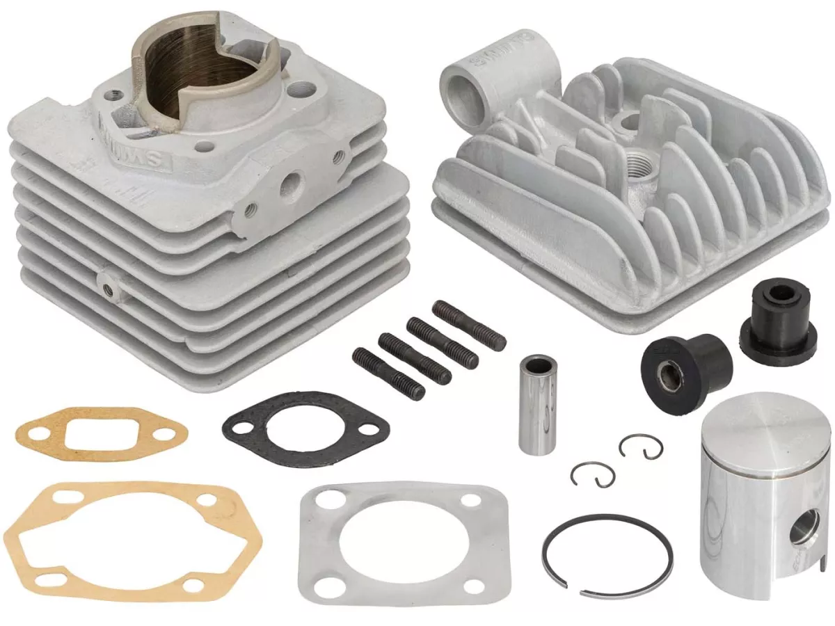Zylinderkit inklusive VERTEX-Kolben, zwei Silentblöcke für den Zylinderkopf und Stehbolzen für Ein- und Auslass.