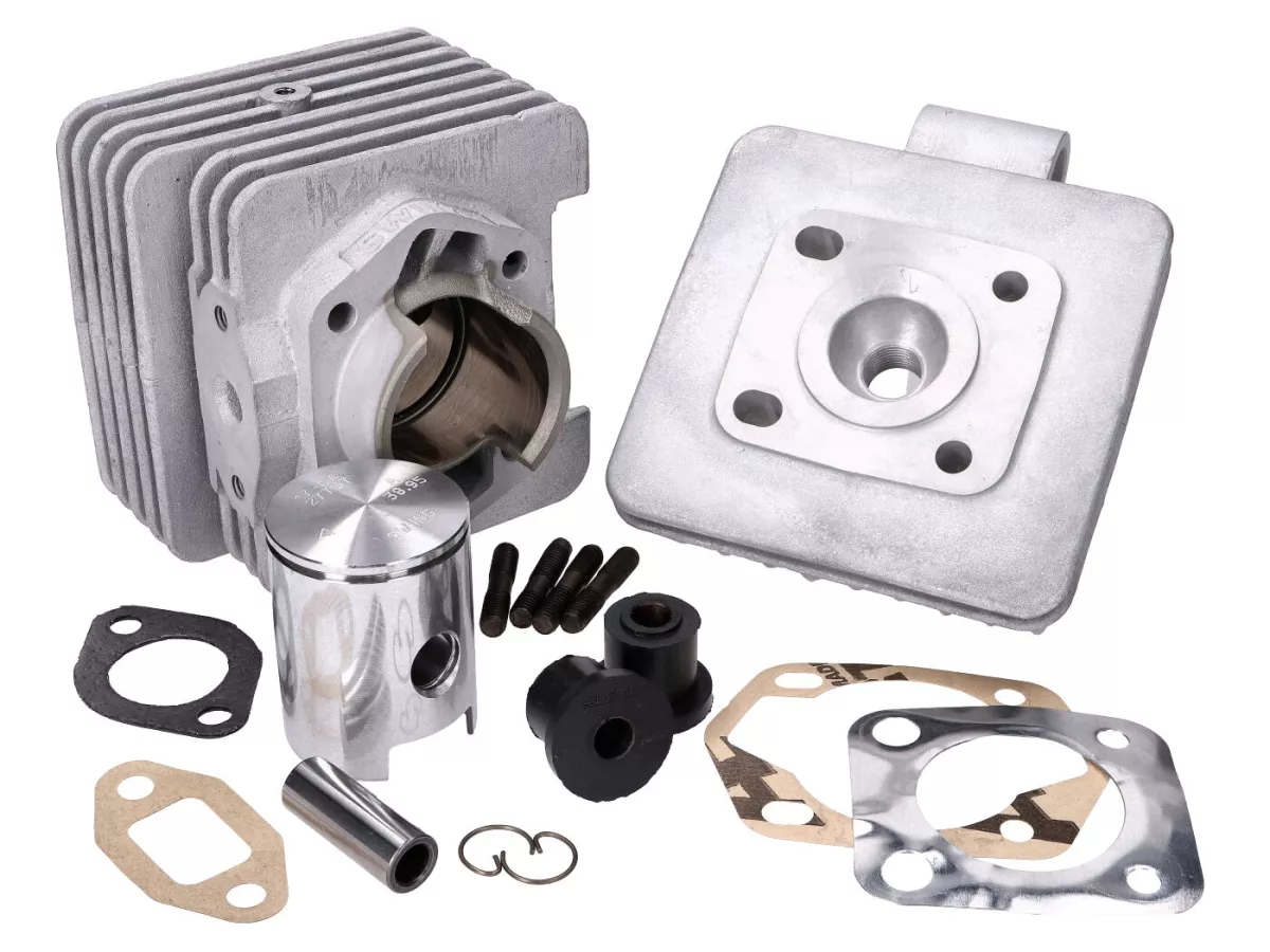 Zylinderkit inklusive VERTEX-Kolben, zwei Silentblöcke für den Zylinderkopf und Stehbolzen für Ein- und Auslass.