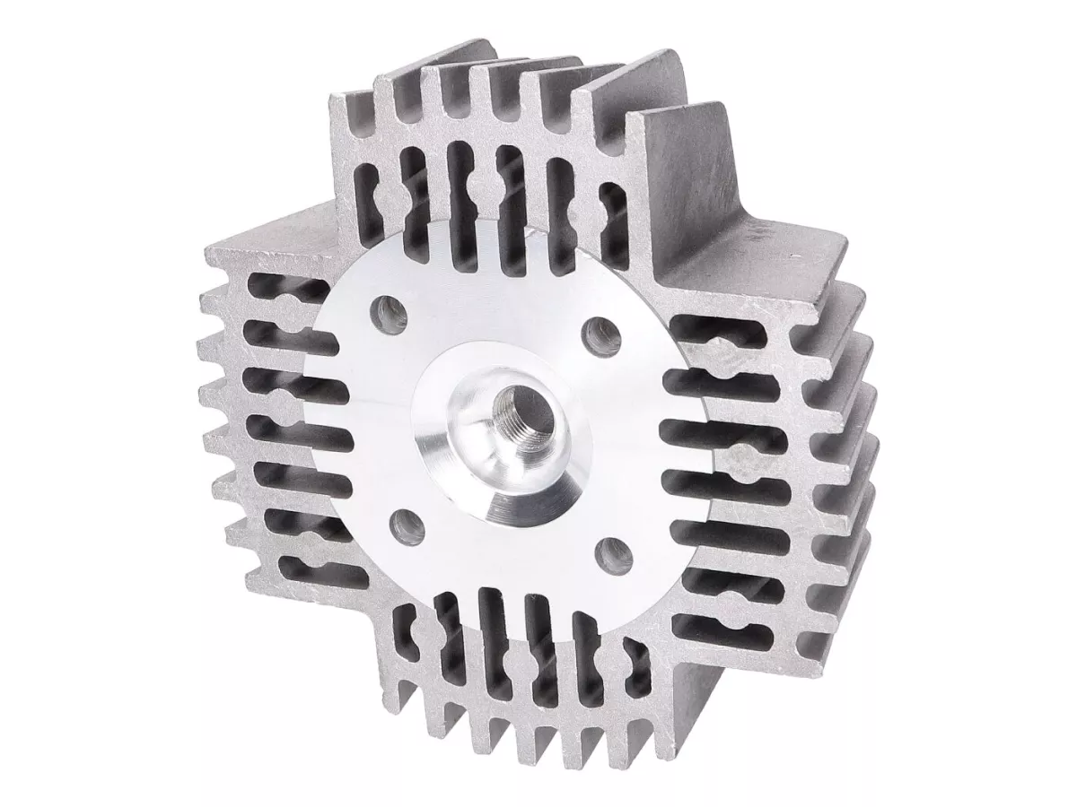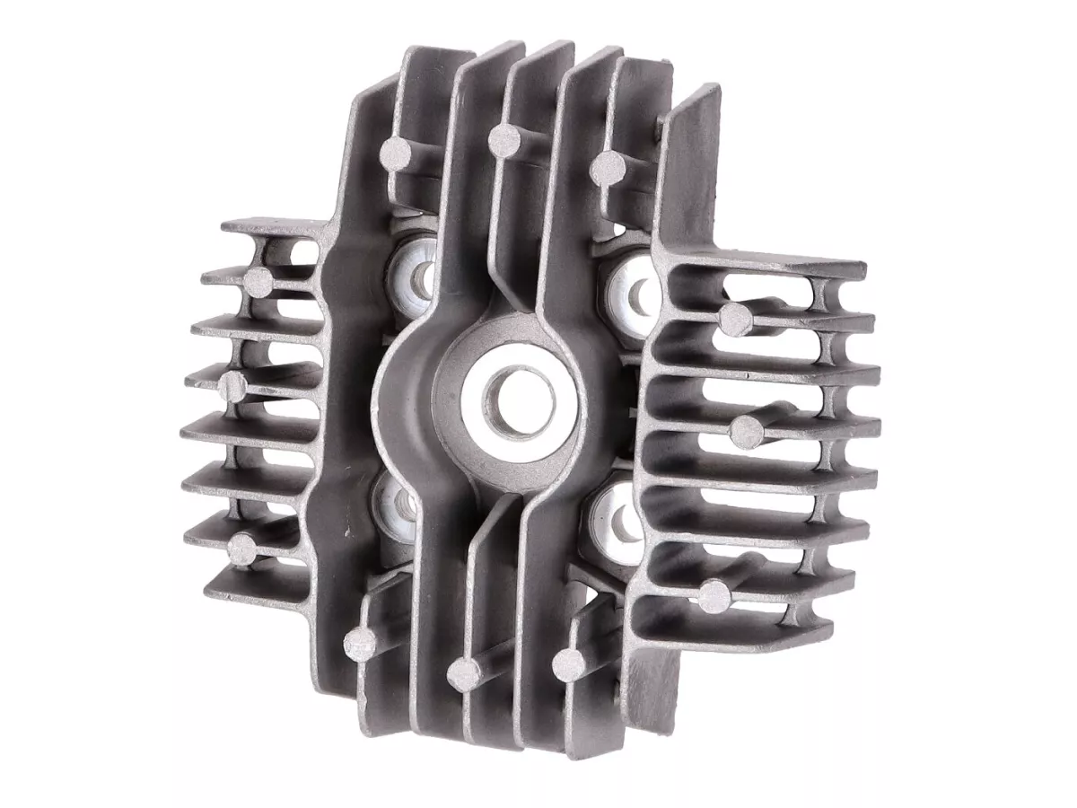 Zylinderkopf aus Aluminium mit verlängerten Kühlrippen für 50ccm Hubraum und 38mm Brennraum-Durchmesser. Die langen Kühlrippen leiten Wärme deutlich besser ab.