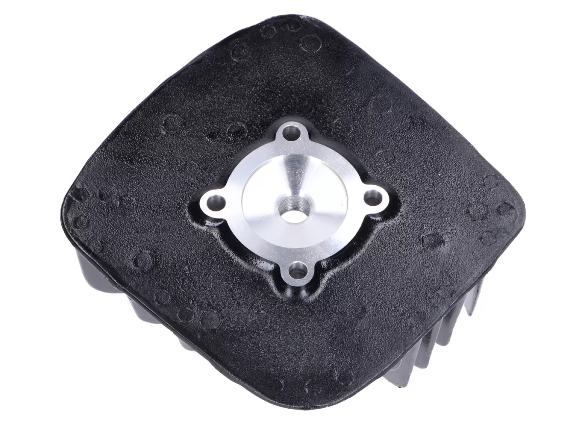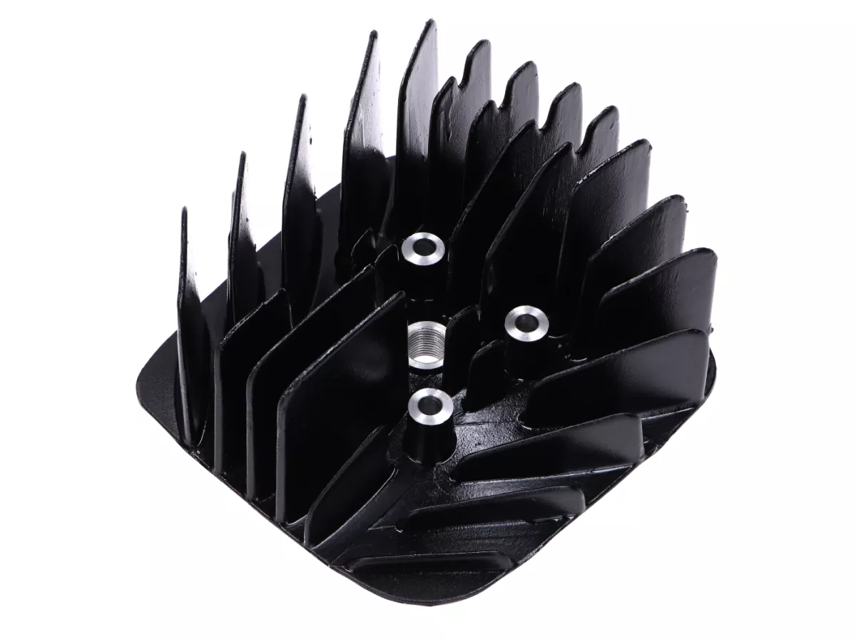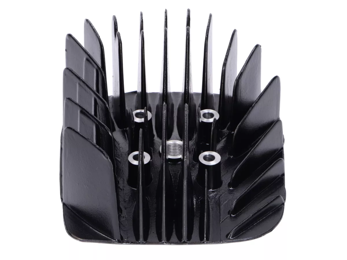 Der Zylinderkopf ist ausgeführt in mattschwarzer Oberfläche und ausgelegt für eine Bohrung von 43mm bei einem Stehbolzenabstand von 45mm. Er ist kompatibel mit Yamaha DT 50 MX und RD Mokick Modellen. Die Konstruktion gewährleistet eine präzise Passform und eine optimale Abdichtung zur Erhaltung der Motorleistung. Durch robuste Materialien und exakte Fertigung wird eine hohe Beständigkeit gegen thermische und mechanische Belastungen sichergestellt. Dieser Zylinderkopf eignet sich ideal für den Austausch oder die Leistungsoptimierung Ihres luftgekühlten 50cc Motors.