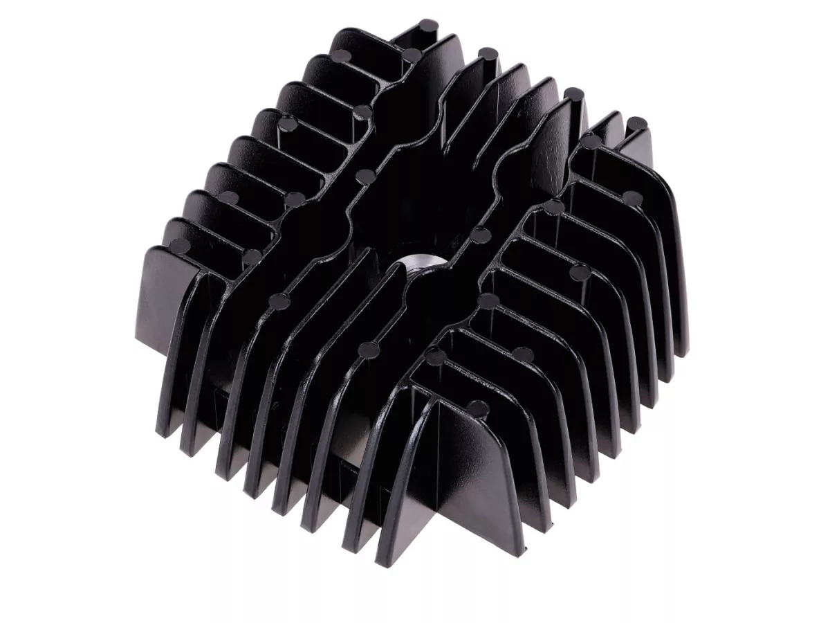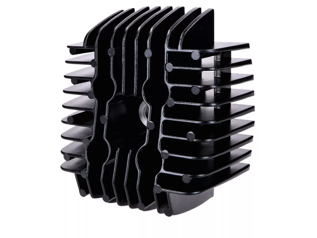 Schwarzer Zylinderkopf von DMP für Zylinderkits mit 70ccm Hubraum und 44mm Bohrung passend für Tomos A3/A35.